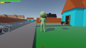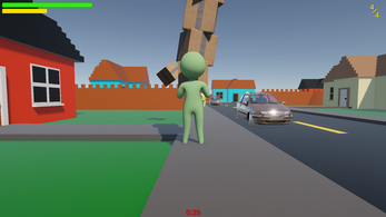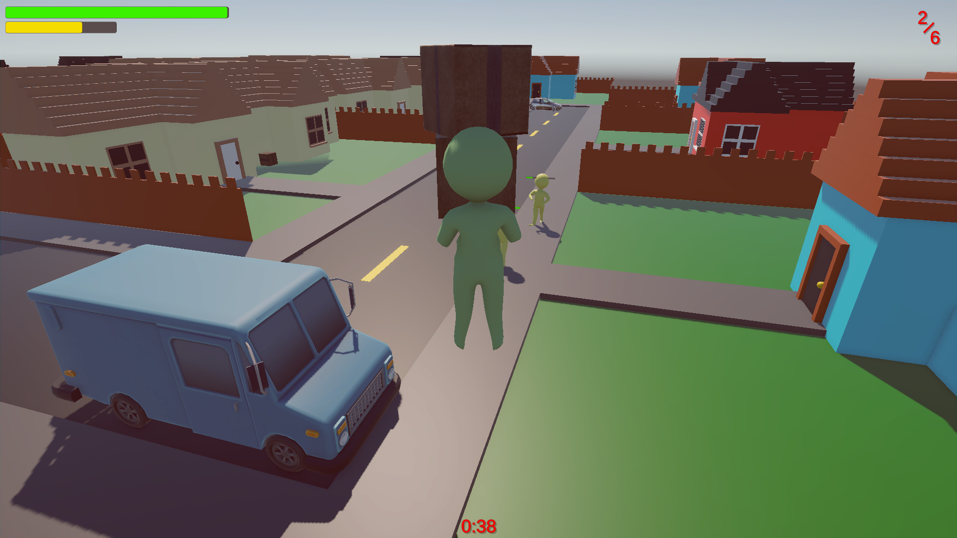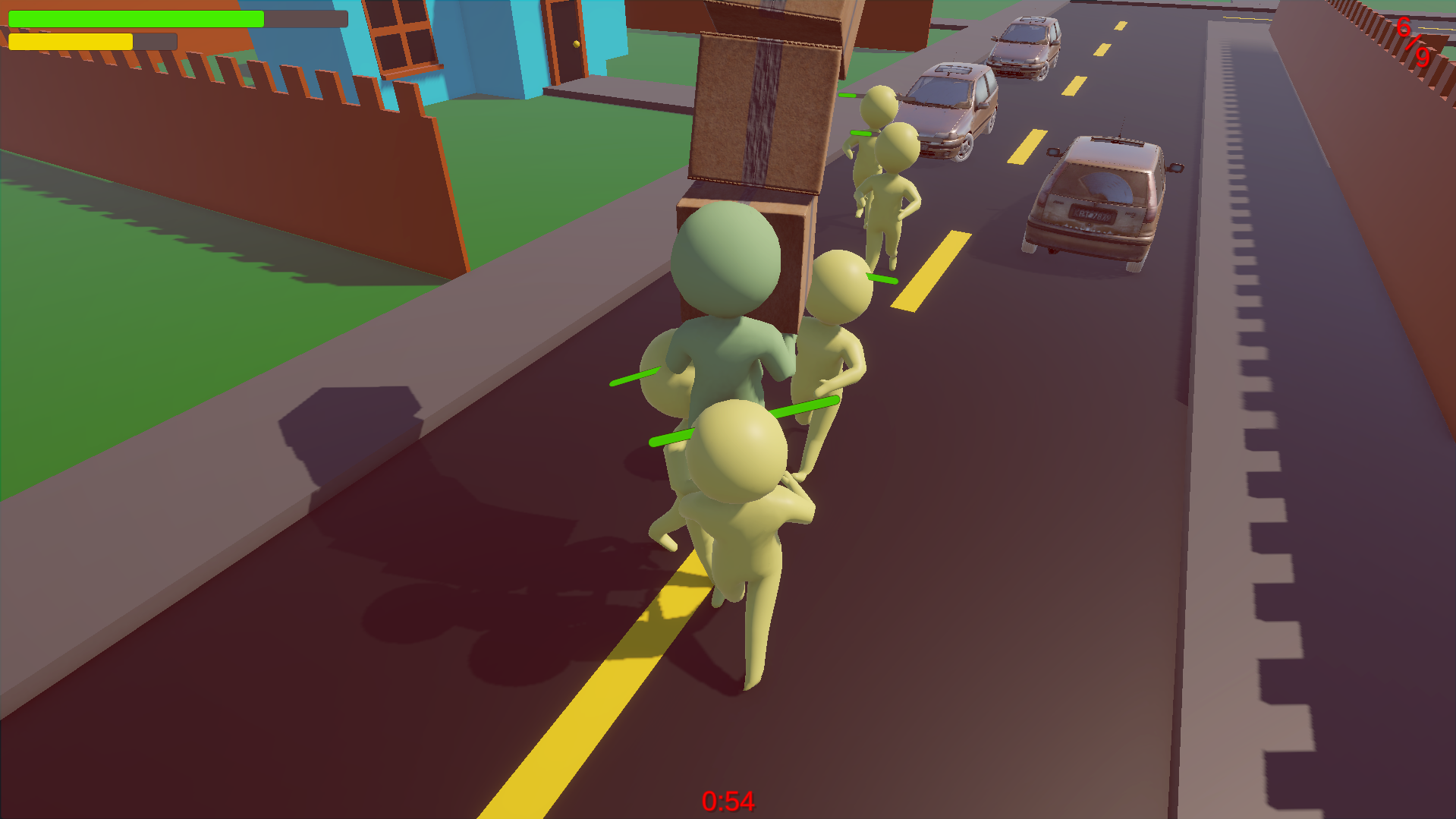 Sprinting, jumping, and getting attacked by the neighbors will loosen your grip on your stack, as indicated by the green bar at the top left. If your grip goes below zero, you will begin to drop your packages.